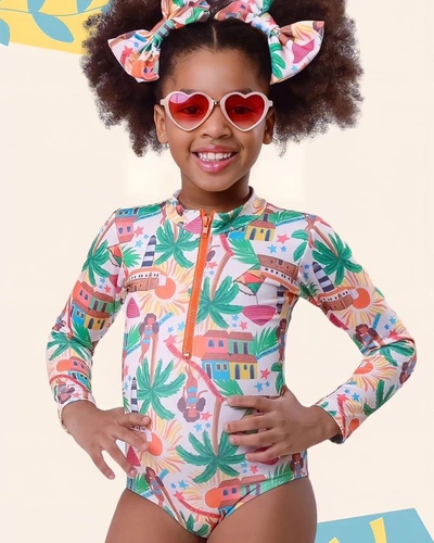 Nossa linha Kids está linda! Confere só esse maiô com mangas e zíper. Tem proteção UVA e UVB!! Ótimo para quem procura uma maior proteção solar! (Fotos: Reprodução – Instagram @acquamodapraiaa)