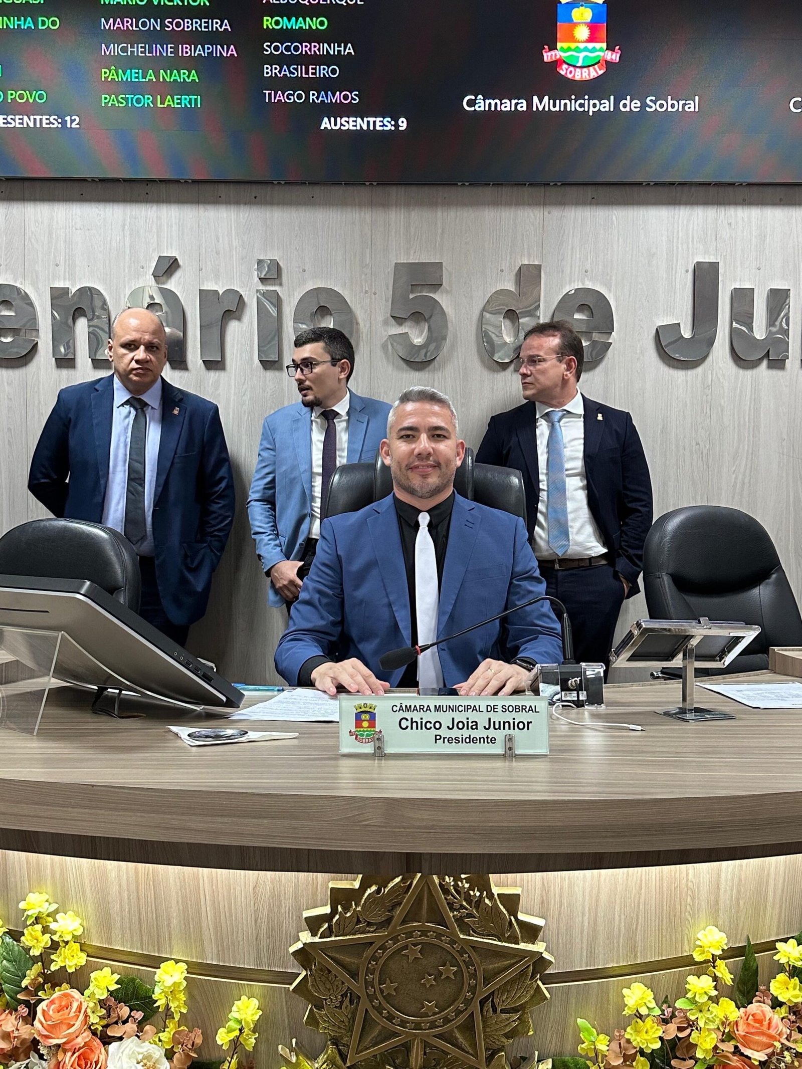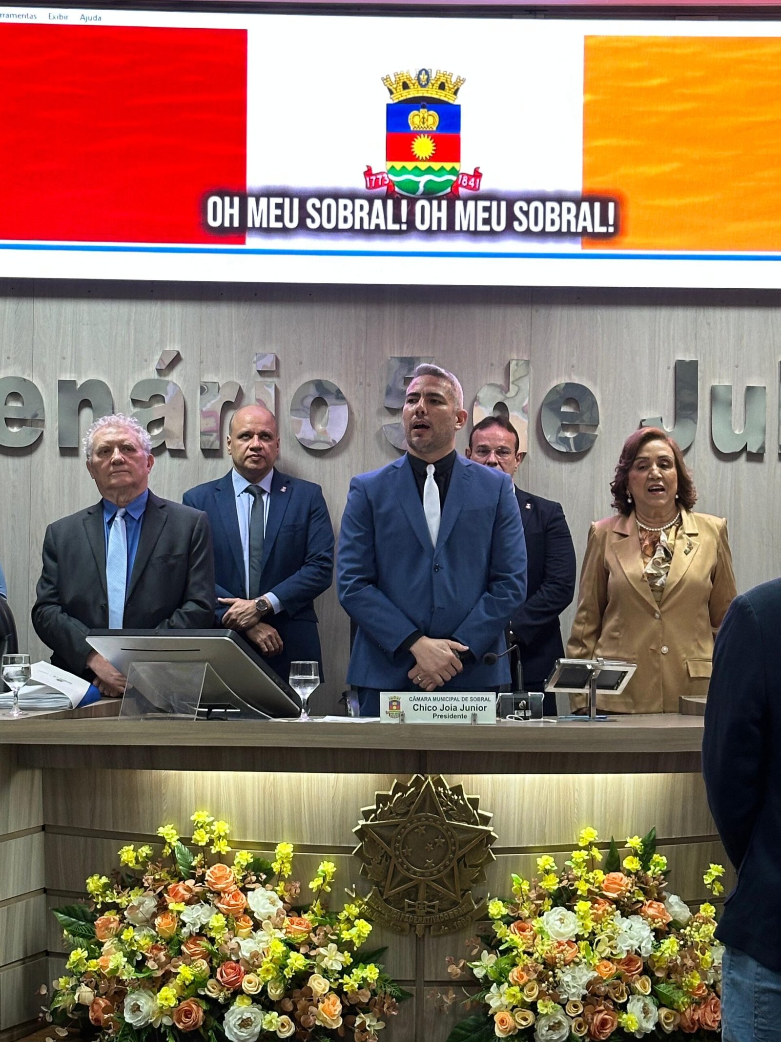 A Câmara Municipal de Sobral realizou a 1ª Sessão do semestre 2026.1, marcando o início oficial dos trabalhos legislativos do ano. A solenidade contou com a presença do presidente da Casa, vereador Chico Jóia Júnior, e de todos os vereadores, além do prefeito Dr. Oscar Rodrigues, da vice-prefeita Dra. Imaculada e da primeira-dama Dra. Vanessa Braga.