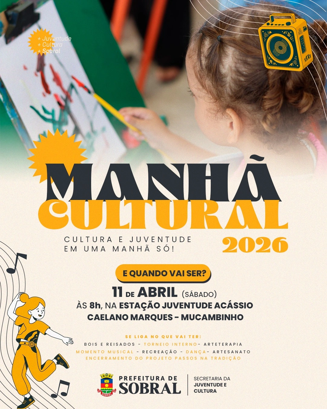 O evento acontece a partir das 8h, na Estação Juventude Acássio Caetano Marques, no bairro Mucambinho, e é aberto ao público. A iniciativa integra as ações de fortalecimento da participação juvenil em atividades culturais e comunitárias.