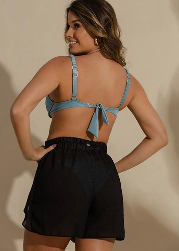 Short Envelope Preto Com Acessório Praia: Super elegante na cor preta com acessório. Ele é perfeito para ser usado como saída de praia, pois é em tecido leve e de secagem rápida.