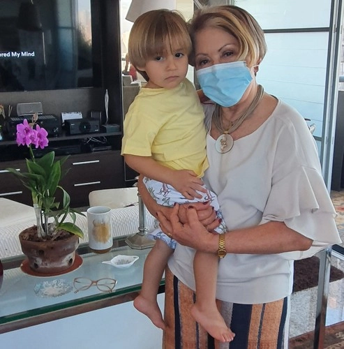 Fotos com seu esposo, o juiz Paulo Santiago, a bisneta Celina e a neta Teresa Amélia.