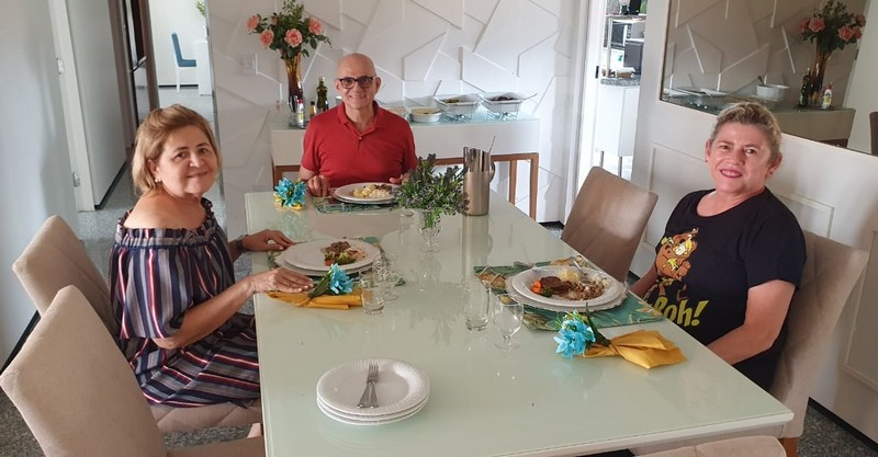 Um comida deliciosa feita com muito amor por sua famosa cozinheira e uma maravilhosa sobremesa da Delícias da Célia.