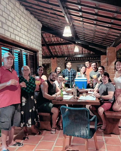 Com a presença dos seus familiares, avós, tios e amigos.