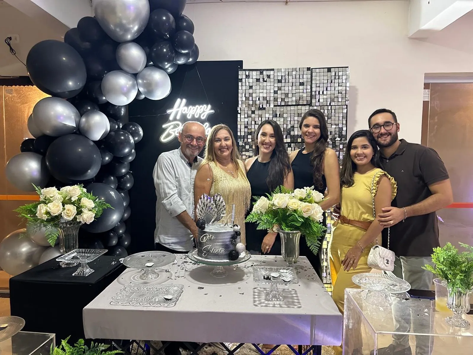 Com a presença de seu familiares e um grupo de casais de amigos.