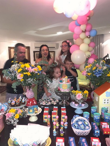 A comemoração foi realizada no lindo apartamento dos pais, com a presença apenas dos familiares.