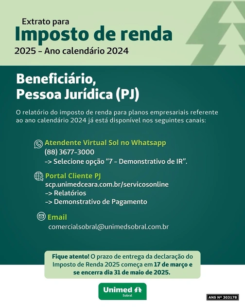 Já está na hora de declarar o Imposto de Renda 2025! Fácil e rápido! Entre em contato ou acesse nossos canais oficiais e garanta seu extrato!