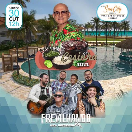 Essas são as atrações da Feijoada do Cesinha 2021. Receptivo com DJ. Franklin, em seguida a dupla Duo Odara e pra fechar com chave de ouro a Banda Frevilhando.