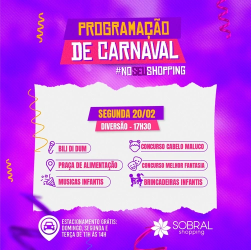 O #seushopping preparou uma super programação para essa segunda-feira (20/02) de carnaval.🎭