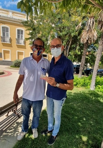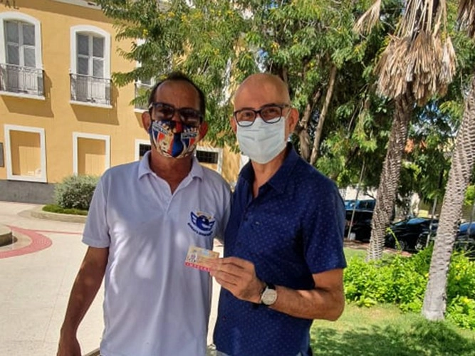 Recebendo minha nova Carteira de Radialista 2021 das mãos do delegado do Sindicato dos Radialista de Sobral, Oliveira Domingos.