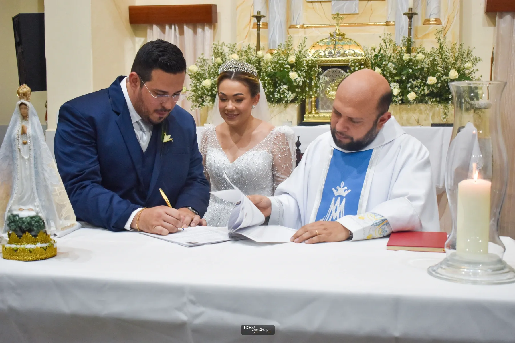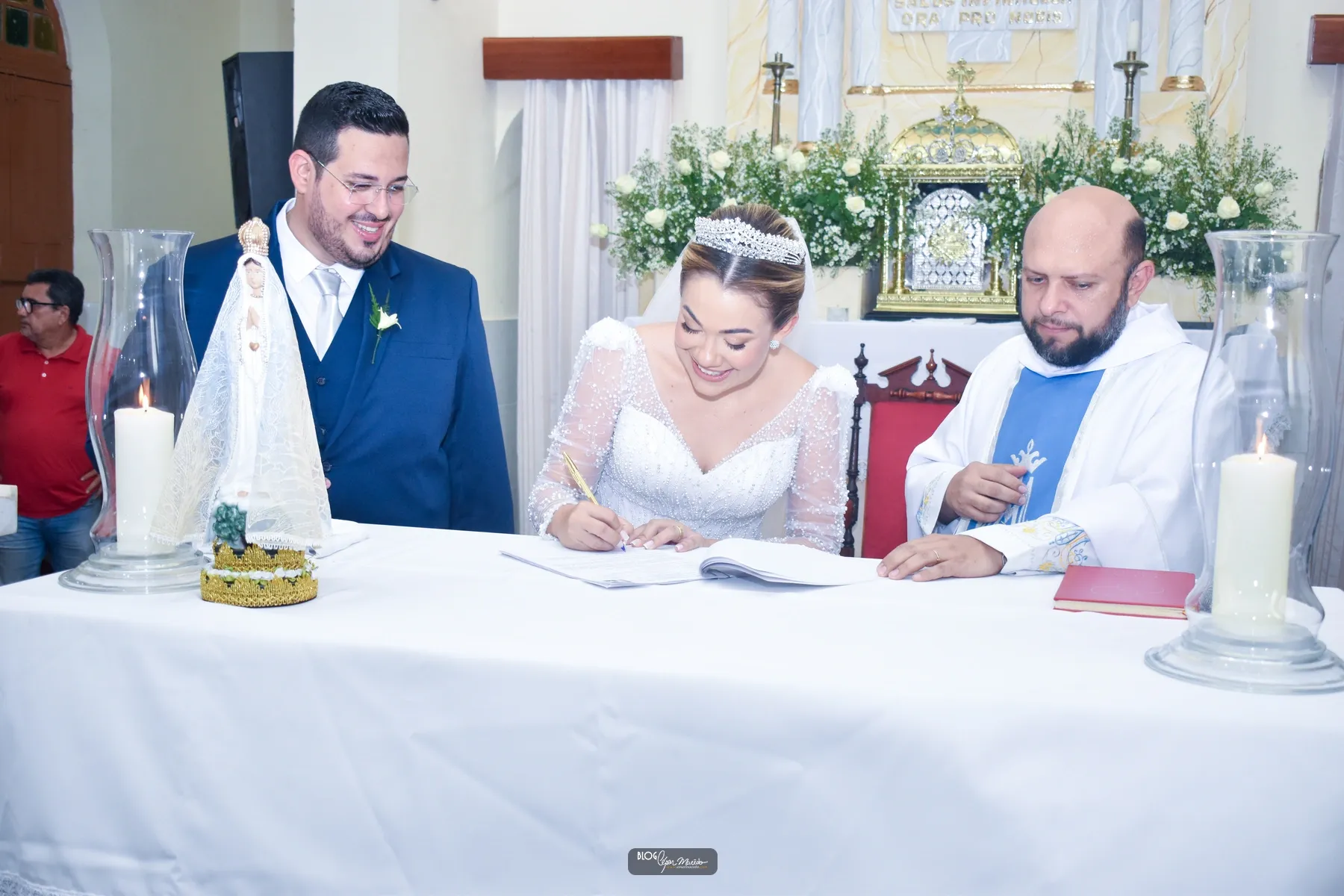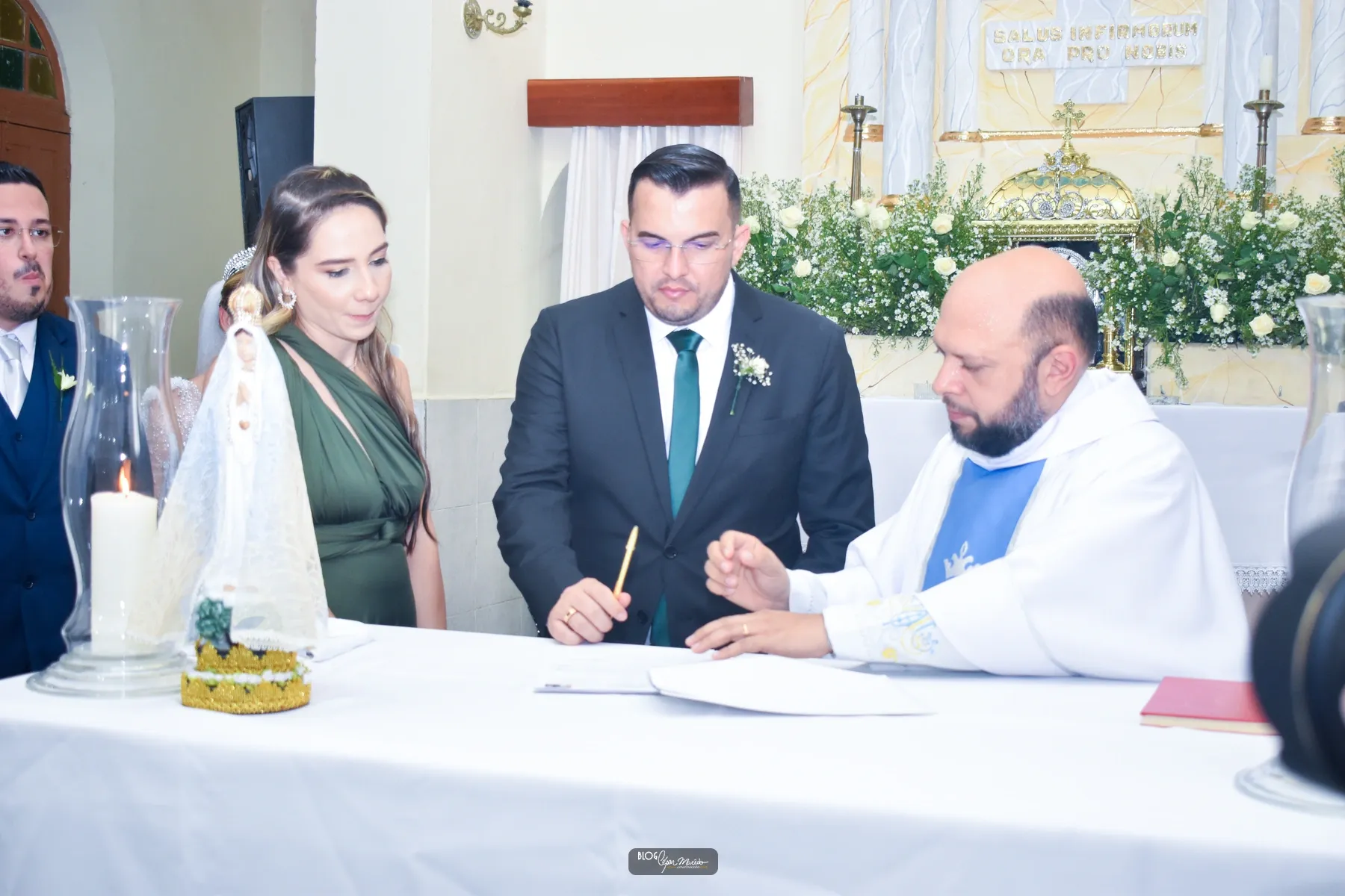 A cerimônia religiosa foi realizada na Igreja da Saúde e foi celebrada pelo Padre Ítalo. Quem comandou o coral da cerimônia religiosa foi o grupo de canto do Santuário São Francisco.