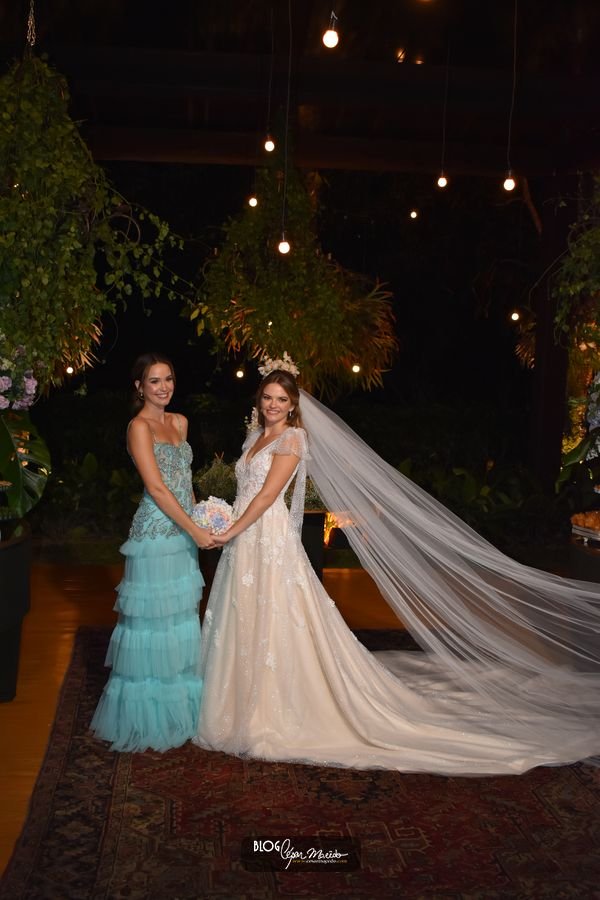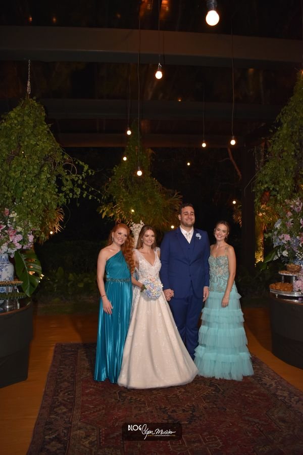 Com um impecável cerimonial do Grupo Celebre. Uma lindíssima decoração assinada por Dito Machado. O maravilhoso Toca Buffet onde foram servidos canapés finos volantes, menu degustação, mesa de gastronomia e o famoso altas horas. Doces prazeres doces e chocolate finos os famosos bem casados de Célia Bezerra e o bolo dos noivos da Doceville. Bebidas finas a vontade, espumante chandon excellence, vinhos tintos, whisk, cerveja e coquetel de Gin e Vodka.