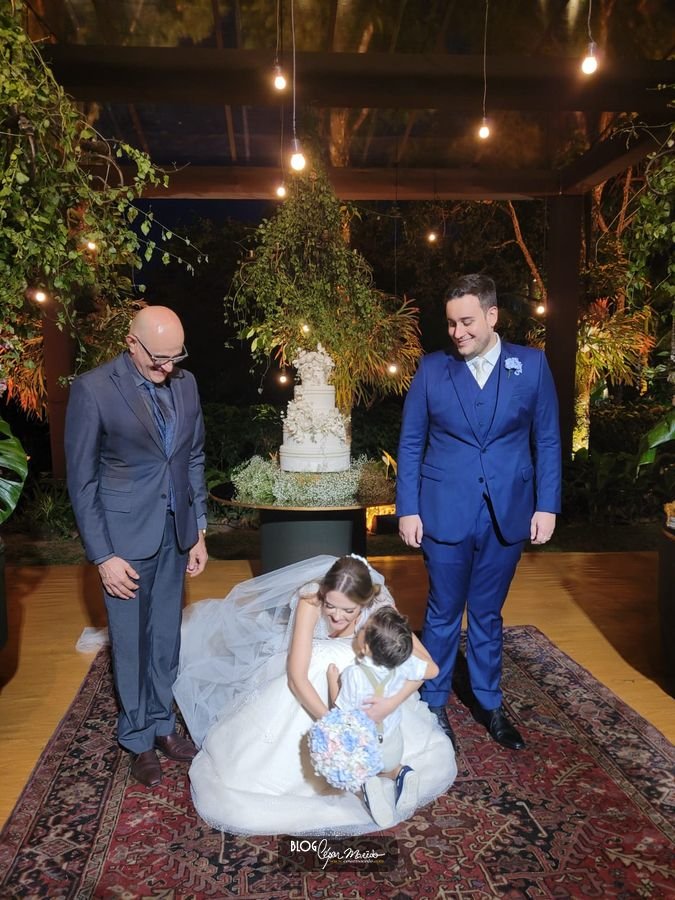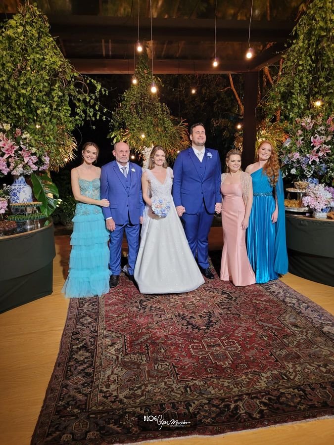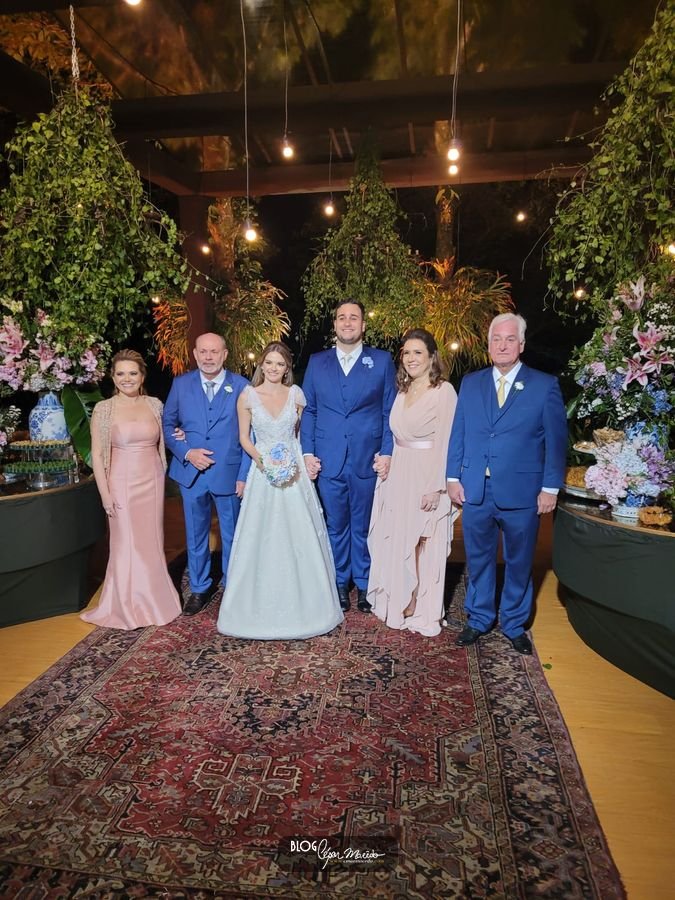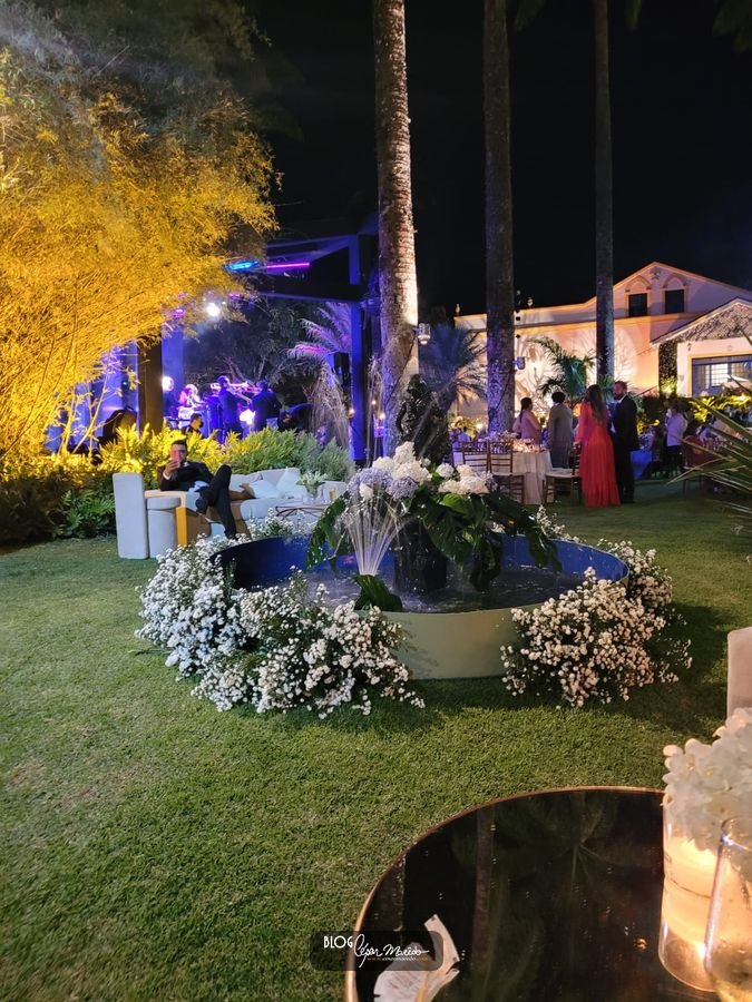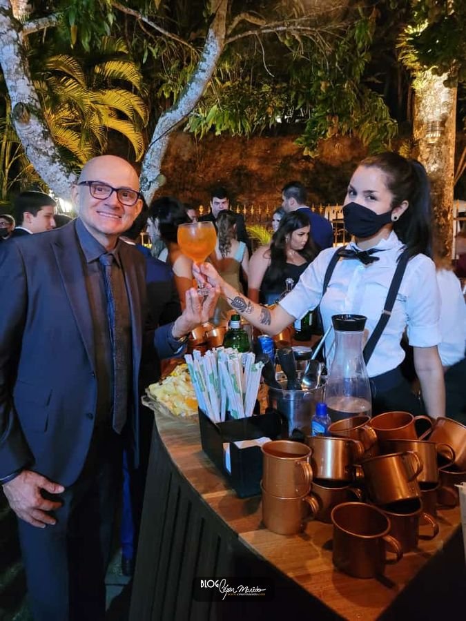 Com um impecável cerimonial do Grupo Celebre. Uma lindíssima decoração assinada por Dito Machado. O maravilhoso Toca Buffet onde foram servidos canapés finos volantes, menu degustação, mesa de gastronomia e o famoso altas horas. Doces prazeres doces e chocolate finos os famosos bem casados de Célia Bezerra e o bolo dos noivos da Doceville. Bebidas finas a vontade, espumante chandon excellence, vinhos tintos, whisk, cerveja e coquetel de Gin e Vodka.
