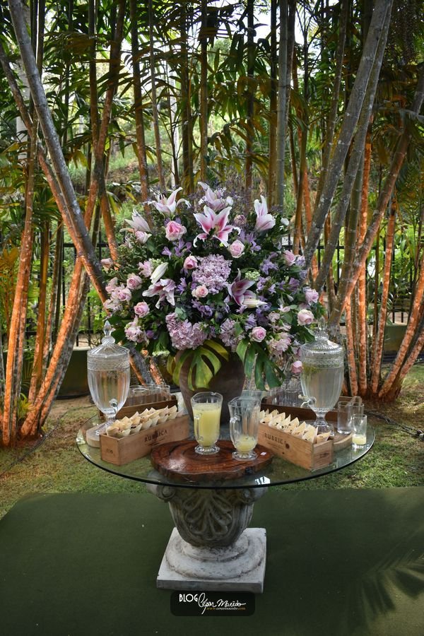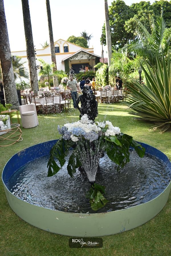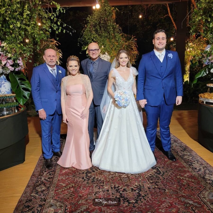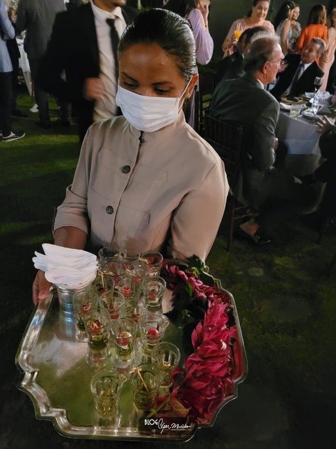 Com um impecável cerimonial do Grupo Celebre. Uma lindíssima decoração assinada por Dito Machado. O maravilhoso Toca Buffet onde foram servidos canapés finos volantes, menu degustação, mesa de gastronomia e o famoso altas horas. Doces prazeres doces e chocolate finos os famosos bem casados de Célia Bezerra e o bolo dos noivos da Doceville. Bebidas finas a vontade, espumante chandon excellence, vinhos tintos, whisk, cerveja e coquetel de Gin e Vodka.