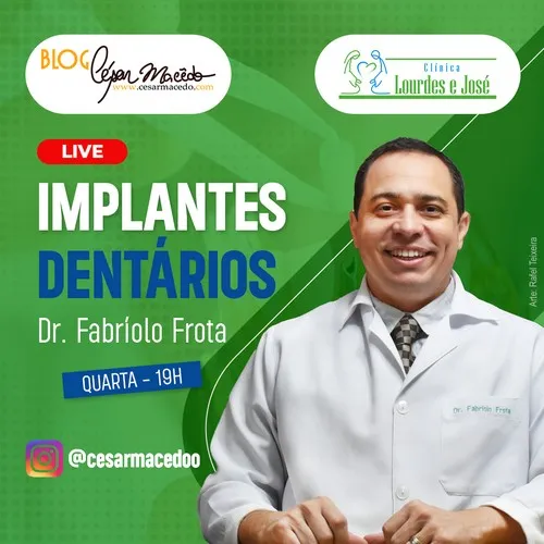 (Foto: Reprodução) Confira o vídeo da Live com o famoso Dr. Fabríolo Frota, onde falamos sobre Implantes Dentários. Instagram: @cesarmacedoo