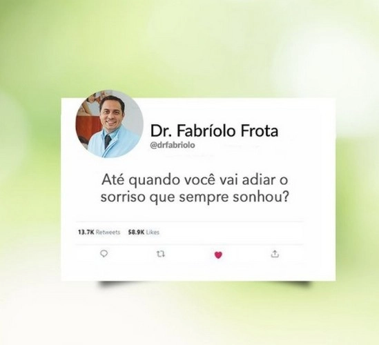 (Foto: Reprodução) A transformação que você busca para o seu sorriso, está aqui! Dr. Fabríolo Frota – Clínica Lourdes e José Rua: Doutor Monte, 815 – Centro – Sobral-Ce Tel: (88) 3613-3157 / Emergência (88) 9.9961-9494