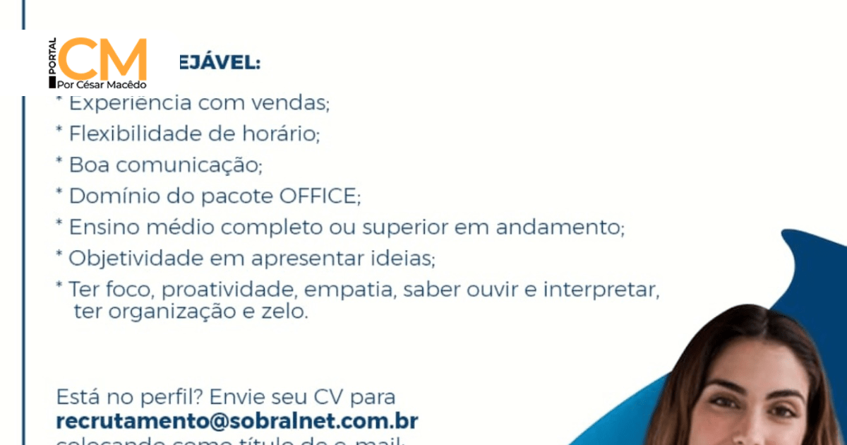 Venha fazer parte do time Sobral Net, consultor de vendas em Sobral.