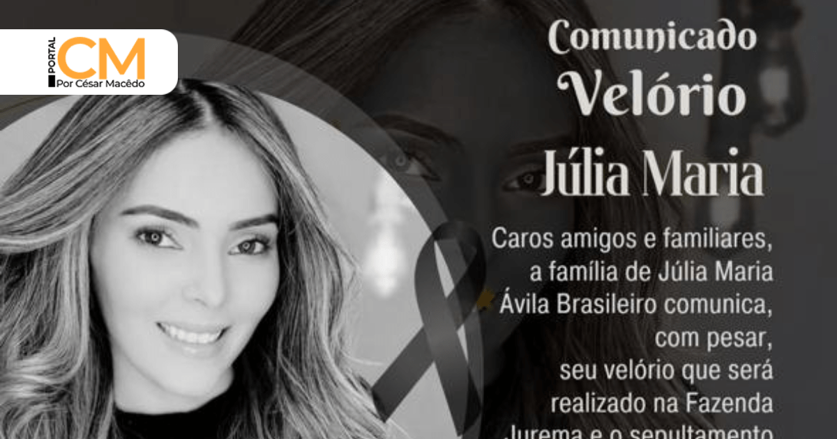 (Imagem: Reprodução) É com profundo pesar que comunicamos o falecimento de Júlia Maria. Seu velório será realizado na Fazenda Jurema, e o sepultamento ocorrerá no cemitério de Taperuaba. Neste momento de dor, expressamos nossas sinceras condolências aos familiares e amigos, rogando a Deus que conforte a todos e conceda o descanso eterno à saudosa Júlia Maria. 🙏