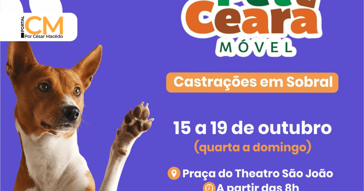 A Prefeitura de Sobral, por meio da Agência Municipal do Meio Ambiente (AMA), está apoiando o projeto Pet Ceará Móvel, uma iniciativa do Governo do Estado, realizada pela Secretaria da Proteção Animal (SPA). De 15 a 19 de outubro, a ação acontecerá na Praça do Theatro São João, a partir das 8h, com castração gratuita […]