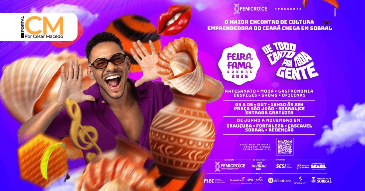 (Imagem: Reprodução) Sobral recebe, de 3 a 5 de outubro, a quarta edição da Feira Fama 2025. O evento será realizado na Praça São João, no Centro da cidade, das 18h30 às 22h, com entrada gratuita e programação aberta ao público. A iniciativa reúne expositores de artesanato, moda, gastronomia e agricultura familiar, com o tema […]