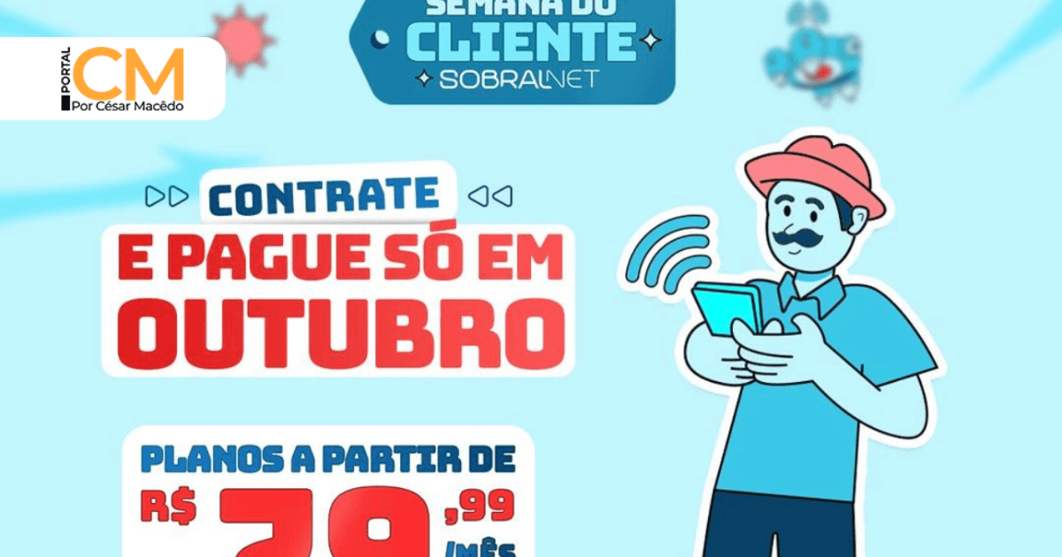A semana do cliente na Sobral Net chegou! Estamos na semana do cliente e OLHA Só: quem fechar um dos nossos planos entre os dias 15 e 20 de setembro só começa pagar em outubro 😁