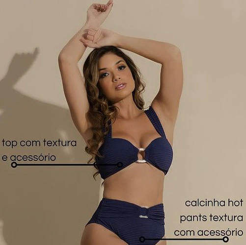 (Foto: Reprodução – Instagram @acquamodapraiaa) Biquíni na cor marinho em tecido texturizado de toque macio, Modelo hot pants e com acessório entre o busto no top e na pala da calça, tornando esse look ainda mais sofisticado. (Fotos: Reprodução – Instagram @acquamodapraiaa) TECIDO: SANTORINI Detalhes do Tecido: É um tecido de poliamida texturizada com estrutura […]