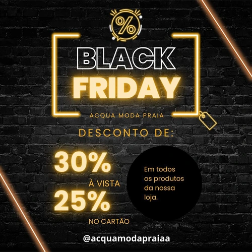 Nossa Black Friday chegou com tudo! Toda a nossa loja com desconto de 30% off à vista ou 25% off no cartão. Então vem pra Acqua Moda Praia.