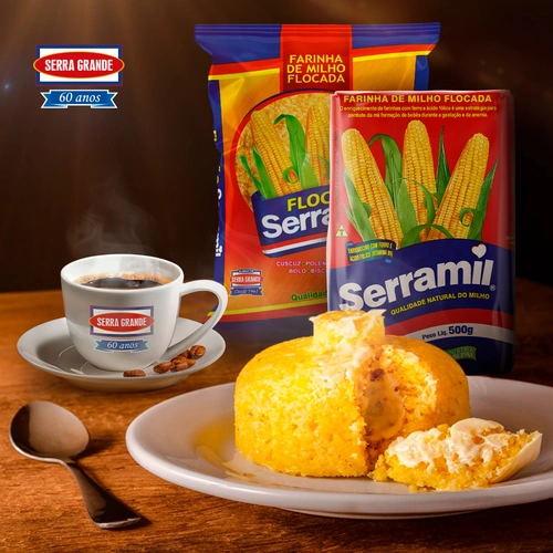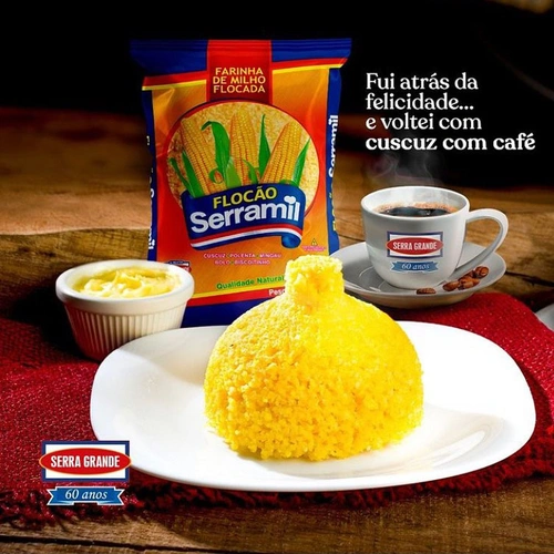 Já imaginou?? Unir o saboroso café Serra Grande com aquele delicioso cuscuz feito com Flocão Serramil. Auela dupla que dá super certo!