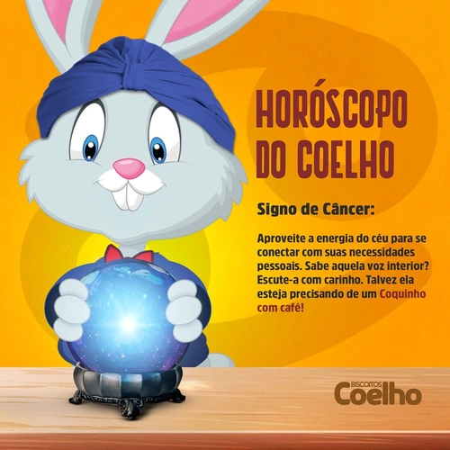 Hora de descobrir o que os astros nos falam sobre o futuro! A dica de hoje é para o signo de câncer: Não ignore suas necessidades, principalmente quando for necessidade de Coquinho com café! #HoroscopodoCoelho #Câncer #SignodeCâncer #CoelhitoWaffer