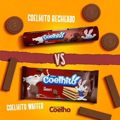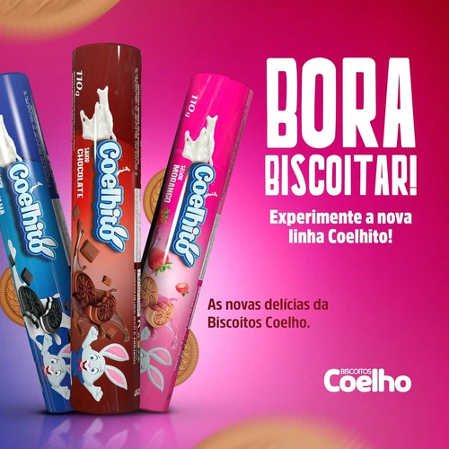 Experimente os sabores da linha Coelhito, as novas delícias da Biscoitos Coelho. Seu lanche ainda mais saboroso em três novos sabores de biscoitos recheados! #BoraBiscoitar #BiscoitosCoelho #Coelhito #Recheado #Biscoitorecheado