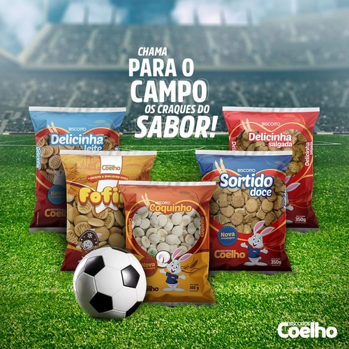 A seleção dos melhores biscoitos para o seu lanche está completa com Biscoitos Coelho! Qual o Camisa 10 da Coelho que te deferente em campo contra aquela vontade de tomar um cafezinho com biscoito? Conta pra gente. #copa #copadomundo #seleção #time #biscoitos