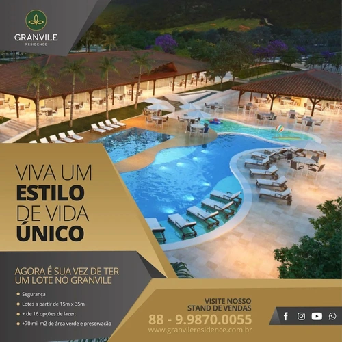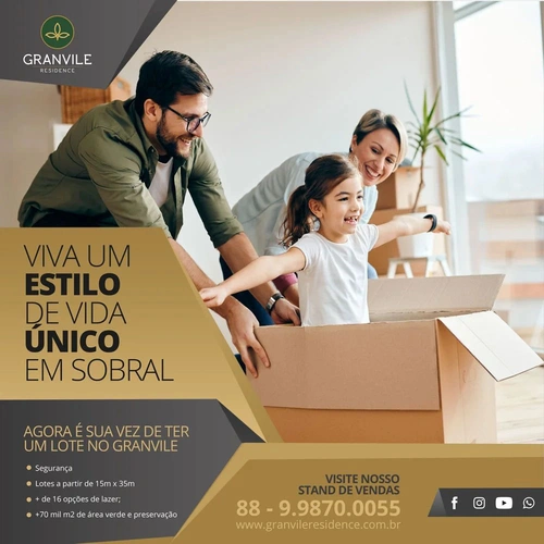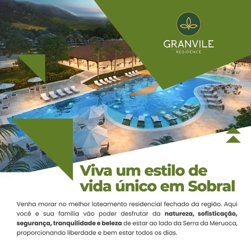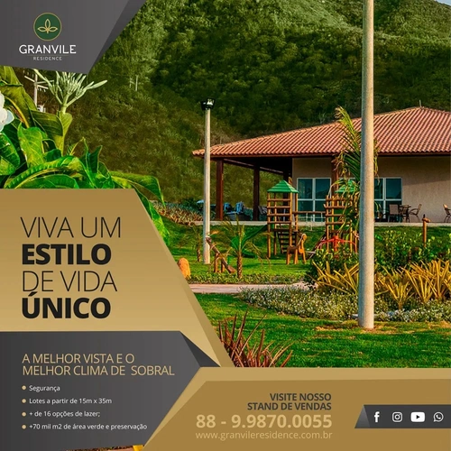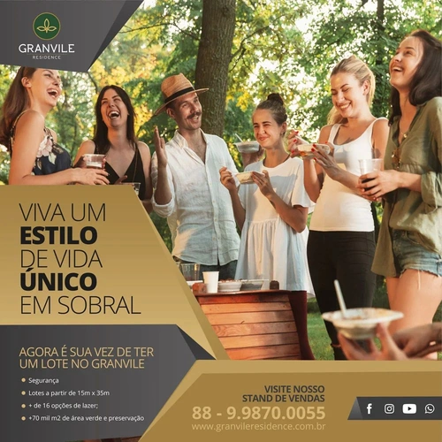 Viva um estilo de vida único! Viva Granvile Residence. Agora é a sua vez de ter um lote no Granvile Residence – Sobral-CE. Fale com um dos nossos corretores através do nosso WhatsApp: (88) 9.9870-0055