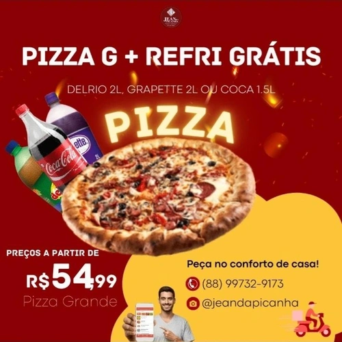 Promoção de Pizza no Jean da Picanha. Entrega no conforto de sua casa! Preços a partir de R$ 54,99. Liga já e peça a sua! (88) 9.9732-9173