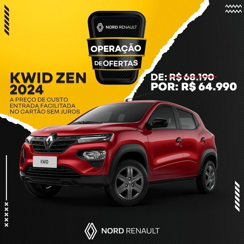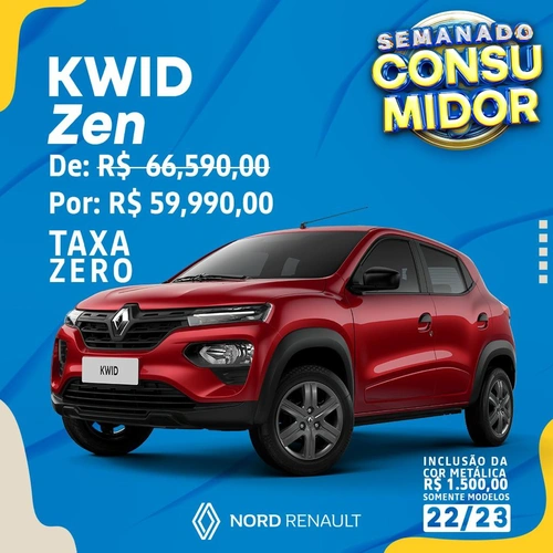 Aproveite a semana do consumidor na Nord Renault! Você sempre ganha comprando com os melhores! Kwid Zen por R$ 59.990,00 e Taxa Zero! Passe lá e garanta o seu!