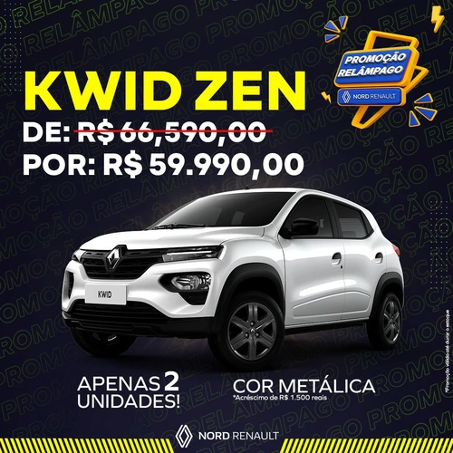Passando para lhe avisar que só tem 2 unidades do Kwid Zen a sua espera. Corra na Nord Renault e aproveite para sair de carro zero!