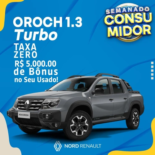 Confere só as maravilhosas oportunidades que a Nord Renault preparou para você na Semana do Consumidor! Oroch 1.3 Turbo com Taxa Zero e R$ 5.000,00 de bônus do seu usado!