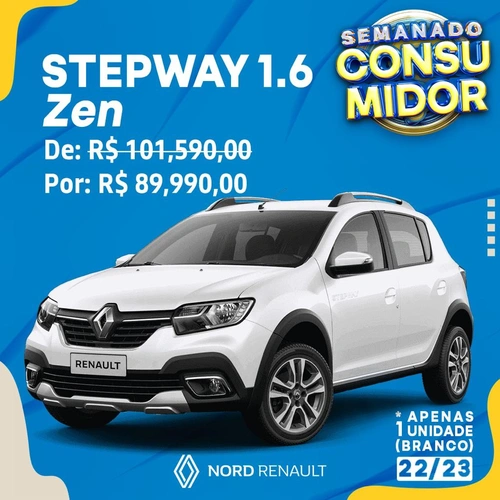 Aproveite a semana do consumidor na Nord Renault! Você sempre ganha comprando com os melhores! Stepway 1.6 Zen por R$ 89.990,00! Mas corre que é pra acabar logo!