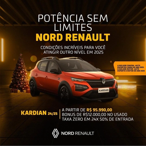 Já pensou em poder comprar seu Kardian 0 km, eleito o “carro do ano” pelo Auto Esporte! Pois é, adquira já o seu, com o preço e as condições que só a Nord Renault pode oferecer!