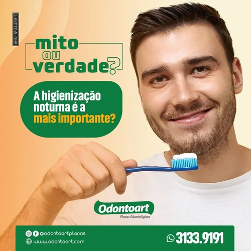 A escovação noturna é a mais importante porque no período noturno, enquanto dormimos, acontece uma redução do fluxo salivar. Com isso, acidez da boca aumenta, crescendo também a suscetibilidade para o desenvolvimento de doenças bucais. #Odontoart #AtendimentoOdontologico #ConsultaOdontologica #DentistaSobral #Odontologia #DentistaFortaleza #saudebucal #planosodontologicos
