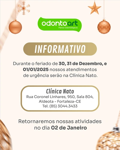 Durante os dias 30 e 31 de dezembro, e 01 de janeiro, nossos atendimentos de urgência em Fortaleza serão na Clínica Nato. Estamos prontos para oferecer suporte e acompanhamento com a qualidade e dedicação que você merece, mesmo durante as festas. 💚✨