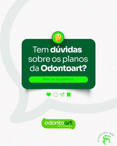 Tem dúvida sobre os planos da Odontoart? Respondendo às suas perguntas mais frequentes dos nossos clientes! 🦷💬 Entre já em contato conosco! (Imagens: Reprodução – Instagram @odontoartplanos)