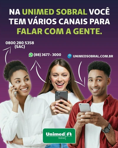 Você tem vários canais para falar com a Unimed Unimed: Telefone, WhatsApp, e Site. Escolha o de sua preferência. Estamos aqui para lhe atender! Unimed Sobral, Aqui tem saúde! Aqui tem Unimed.