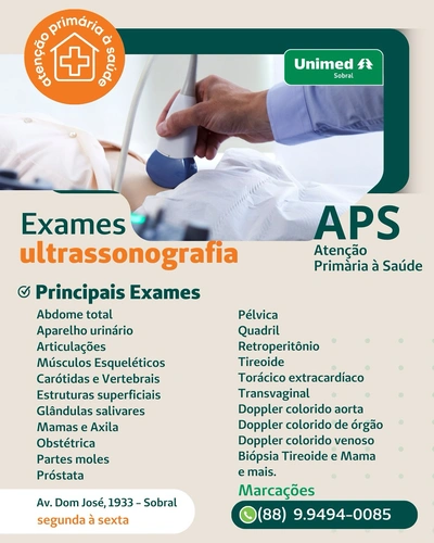 Agende seu exame de ultrassonografia! Atenção Primária à Saúde (APS) Av. Dom José, 1933 – Sobral/CE – (88) 9.9494-0085