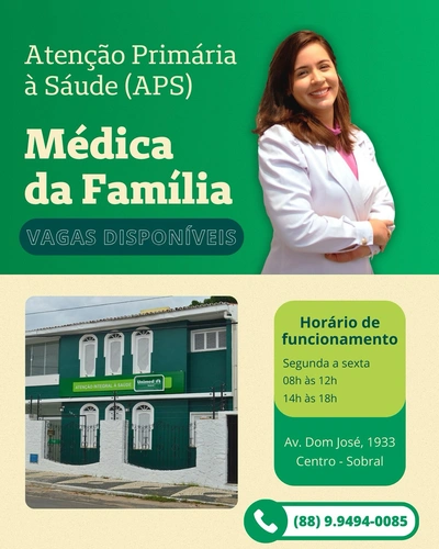 Agende sua consulta com a Médica da Família! 👩⚕️ Vagas disponíveis! 📆Av. Dom José, 1933 – Centro📲 (88) 9.9494-0085