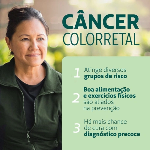 Compartilhe esta informação: o câncer colorretal ocorre no intestino, tem diferentes causas e só tem sintomas aparentes quando o quadro já está avançado. Anemia, diarreia e mudanças na saúde intestinal são alguns dos sinais. Mantenha as consultas médicas em dia e previna-se! #PraCegoVer #PraTodosVerem Fotografia de uma mulher caminhando, ao lado o texto: “Câncer Colorretal. […]