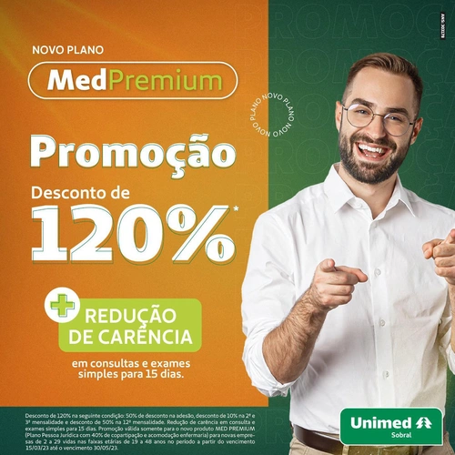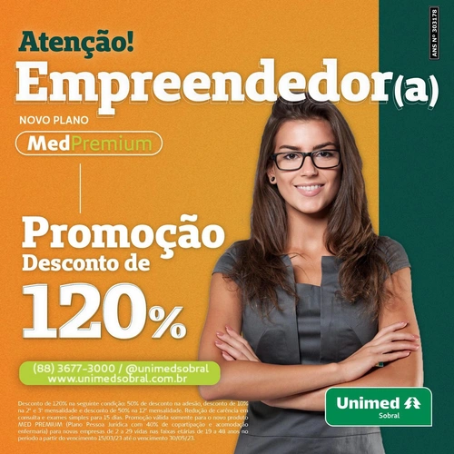 Novo Plano Empresarial Med Premium! SUPER PROMOÇÃO DE LANÇAMENTO! 120% de desconto + redução de carência em consultas e exames simples para 15 dias. Quer saber mais? Acesse o link na bio do Instagram @unimedsobral Se sua equipe pode ter Unimed, para que complicar? (88) 3677-3000 / www.unimedsobral.com.br / @unimedsobral