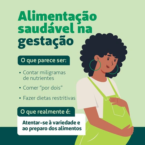Os cuidados com a alimentação da gestante são importantes para o bem-estar da mãe e para o desenvolvimento do bebê e podem ser mantidos até depois do nascimento. Saiba mais no link na bio. #PraCegoVer #PraTodosVerem Sobre fundo verde, temos a ilustração de uma mulher grávida e o texto: “Alimentação saudável na gestação. O que parece […]