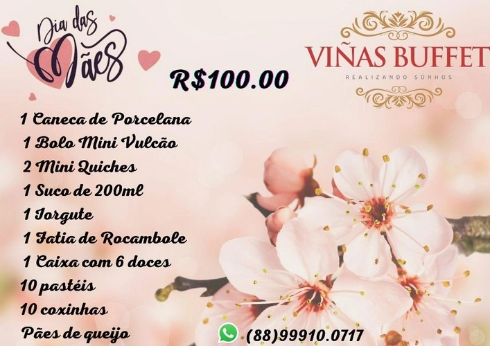 Foto: Reprodução O Dia das Mães está chegando, e a equipe do Viñas Buffet já está preparada com um maravilhoso kit para presentear as mamães. Confiram!