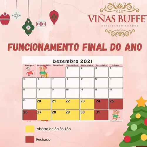 (Foto: Reprodução) Confira só o calendário de funcionamento de final de ano do Viñas Buffet. Se programe e garanta seu melhor cardápio!