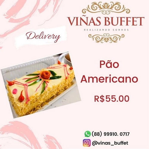 Foto: Reprodução (Instagram: @vinas_buffet) O Viñas Buffet está ai com o delicioso pão americano e o kit celebrar. Faça já o seu pedido pelo delivery! Instagram: @vinas_buffet e WhatsApp (88) 9.9910-0717 Foto: Reprodução (Instagram: @vinas_buffet)