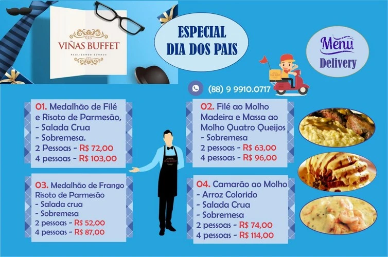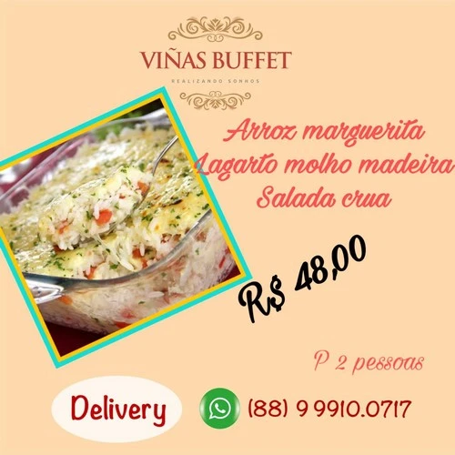O Viñas Buffet está com seu menu atualizado, com pratos sofisticados. Pedidos pelo WhatsApp (88) 9.9910-0717. Fotos: Reprodução